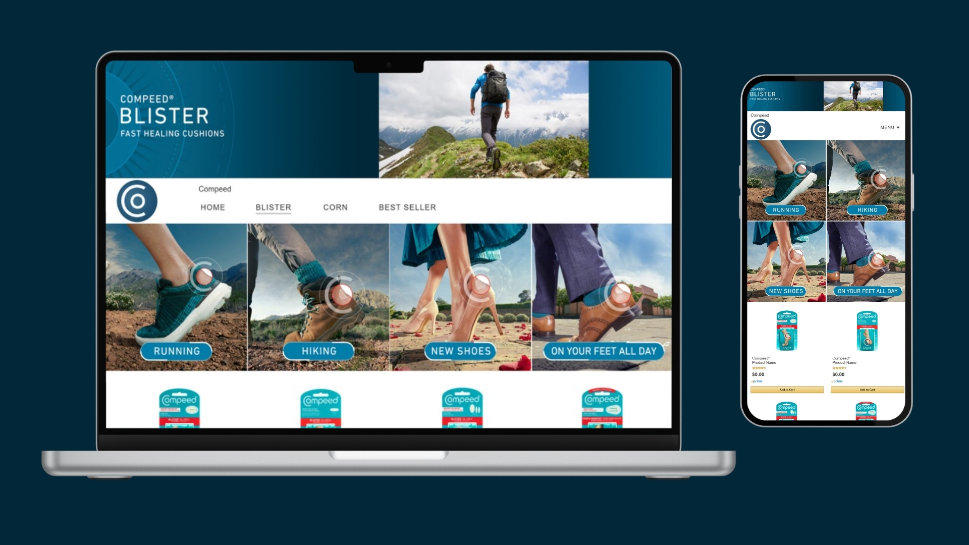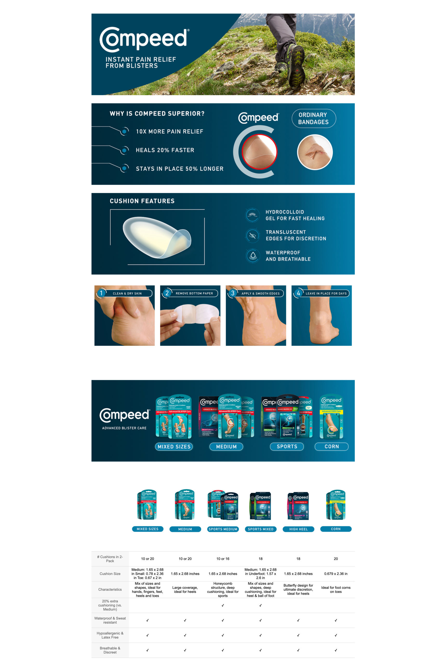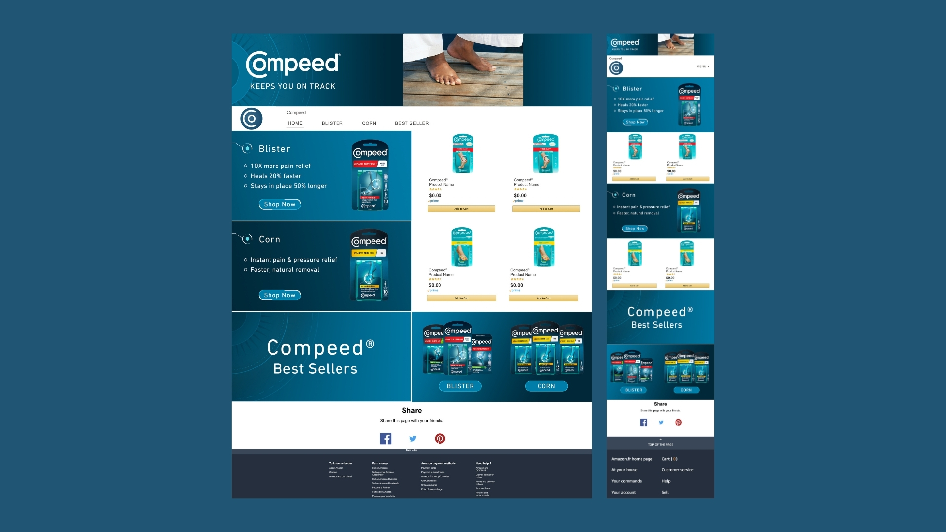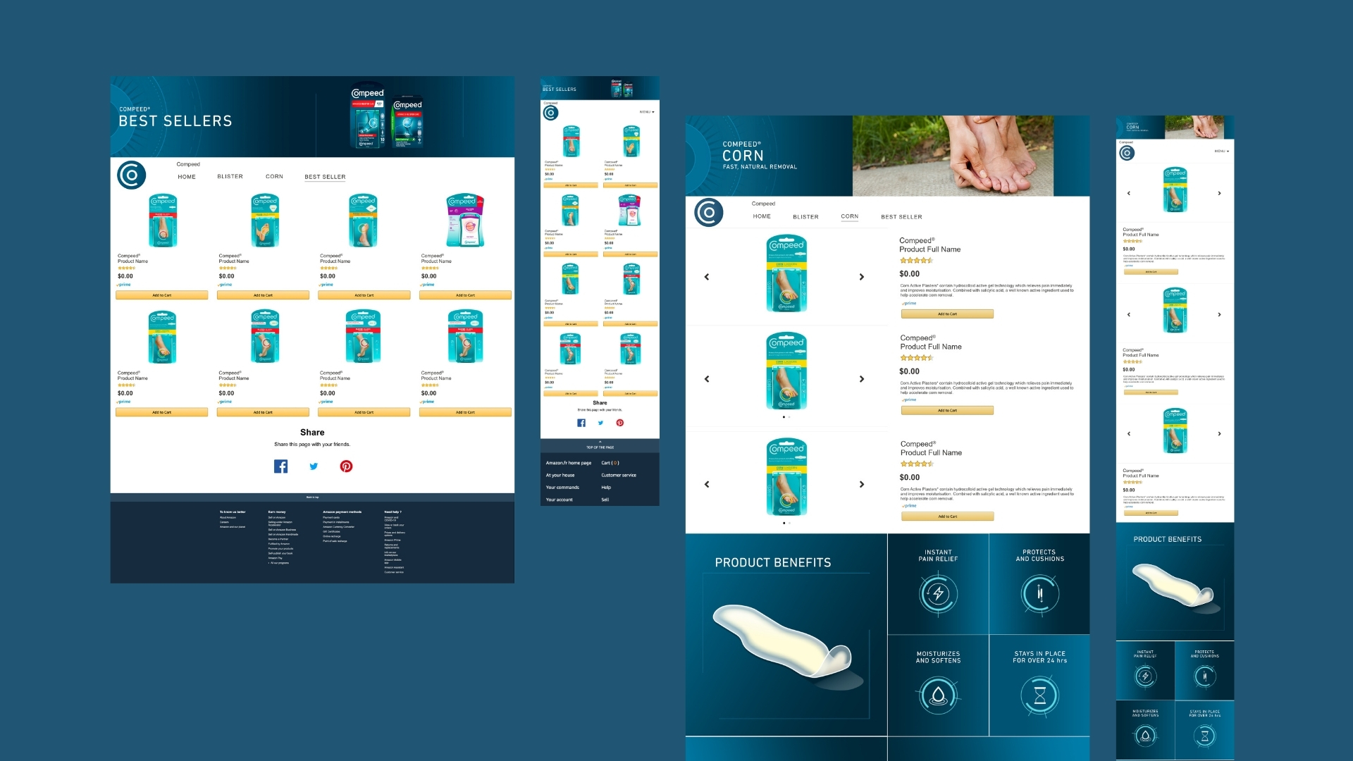 For Compeed, I designed the launch of their eCommerce Amazon brand stores (micro-sites) within select countries. This included Art Direction assets (3D pack development seen within the mockups) that needed to be adaptable to multiple markets and languages.