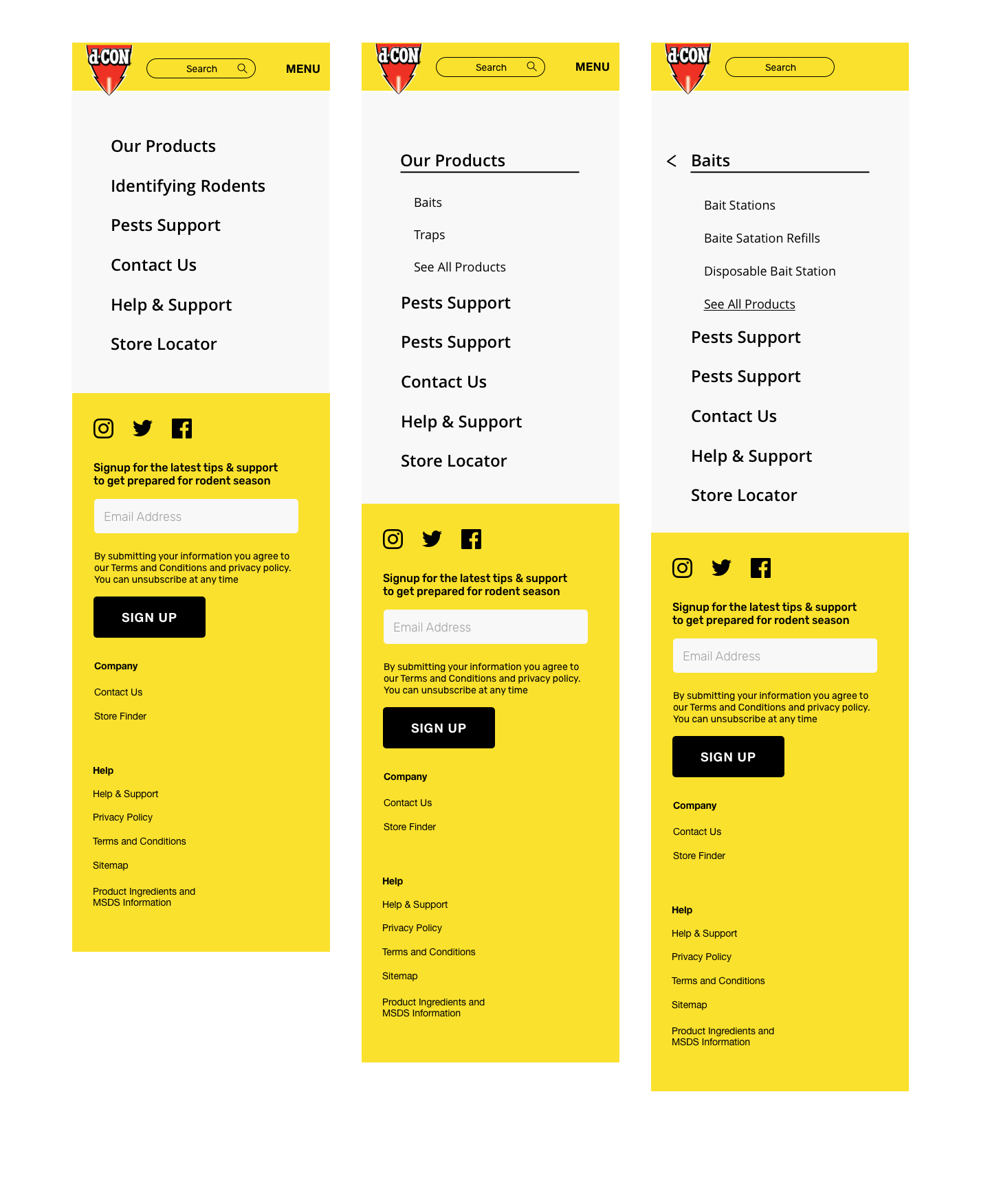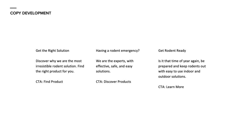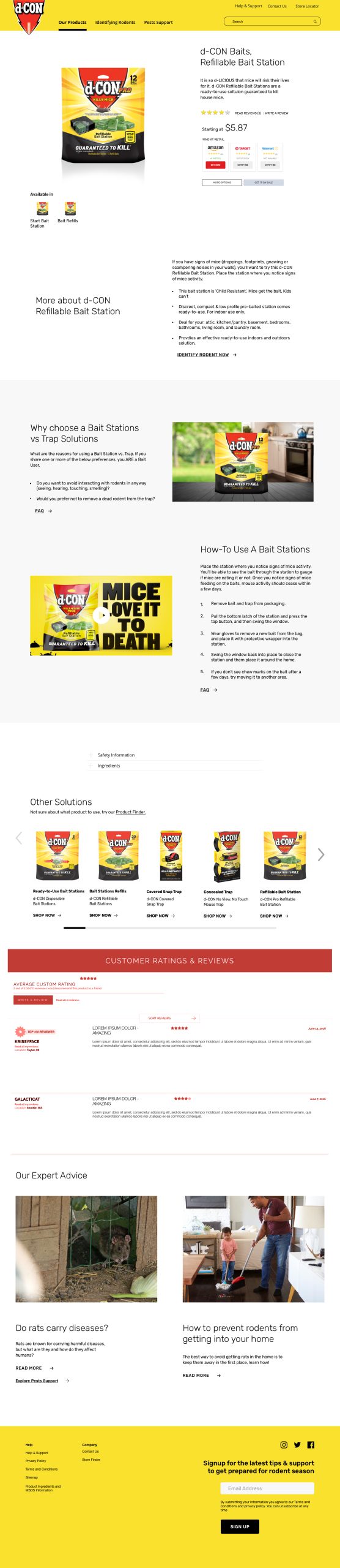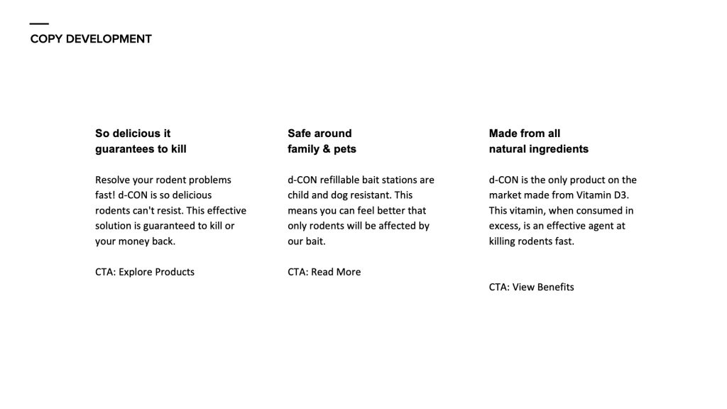 To develop the new d-CON Homepage and Product Page, I first created the site map, with guidance on the customer flow based on the funnel and organic vs. paid search.