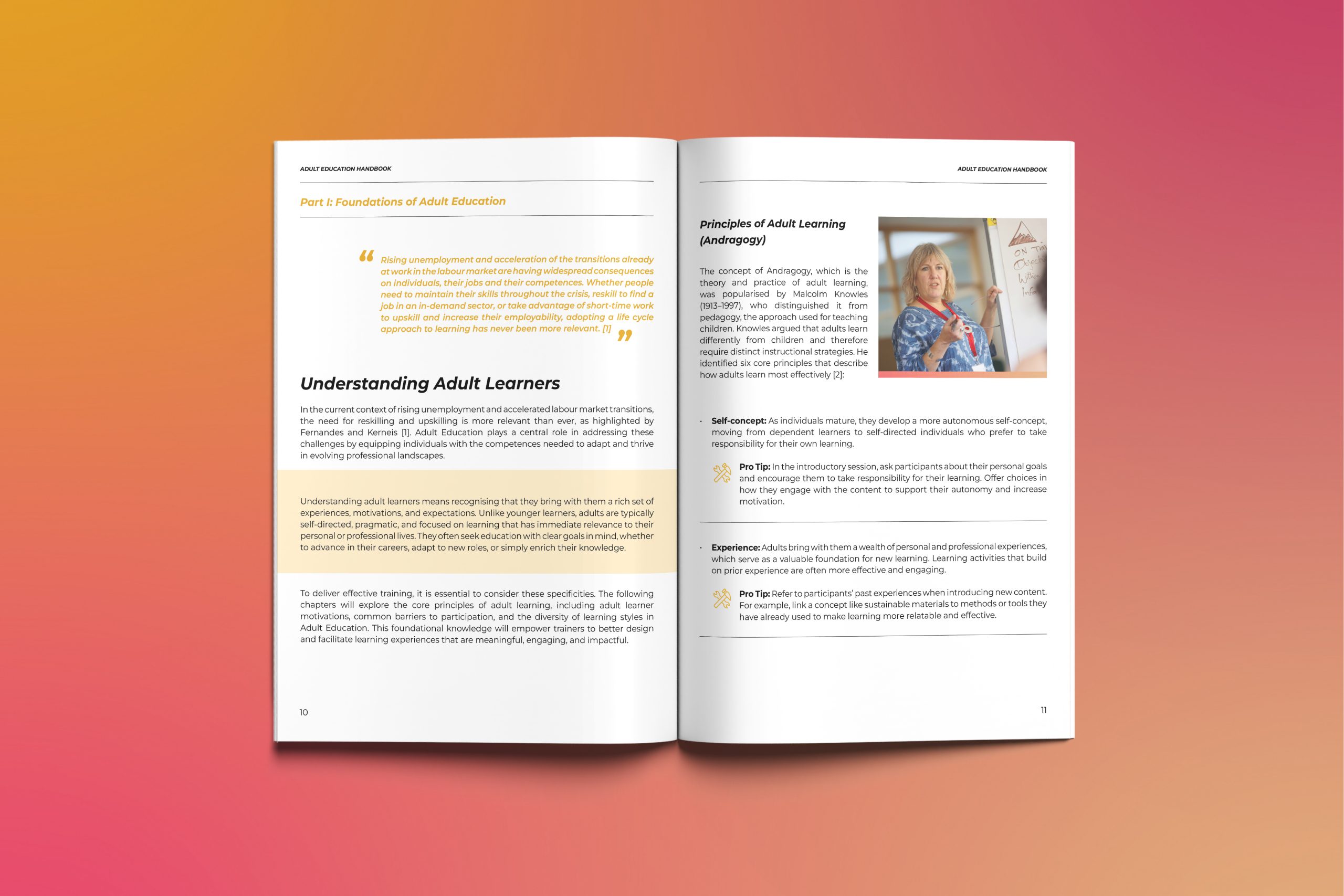 Selected colors were used to divide the chapters, with bold primary tones applied sparingly to highlight key content. The objective was to keep the dense material approachable, using plenty of white space, imagery, and iconography to support reader engagement.